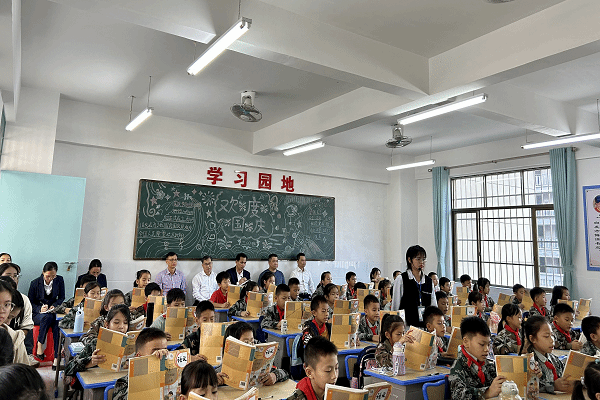 陈鹏一行在桂平市长安工业园区小学座谈交流
