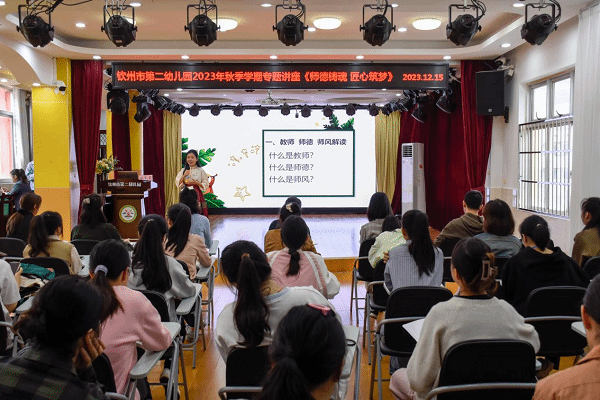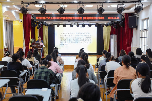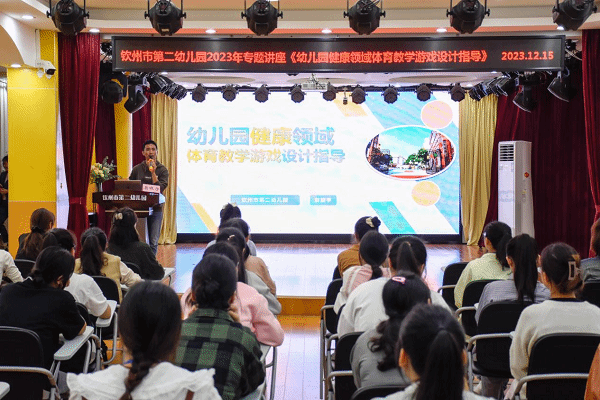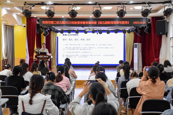 为提高实习生专业素养与实践能力,2023年12月15日钦州市第二幼儿园余先霞、翁旋宇、朱华、黎明等四位教师为实习生开设专题讲座。吴小静园长、陈桂华副园长、龙燕玲主任与实习带队黎爱群老师,以及25名北部湾大学前教育专业实习生参加本次讲座。