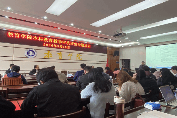 3月19日下午,我院在1A-412会议室举行本科教育教学审核评估专题培训会,学院院长周顺平主持会议并做专题培训,全体教职工参加。