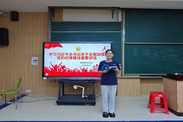 此次党纪学习教育主要围绕《中国共产党纪律处分条例》相关内容展开学习。学生支部书记刘泳杰指出,党员要时刻严格要求自己,发挥我们在群众当中的模范带头作用,在大是大非面前有辨别的能力,这样我们才能做一名优秀的共产党员。接着,各支部派代表分享自己关于此次党纪学习教育的心得体会。