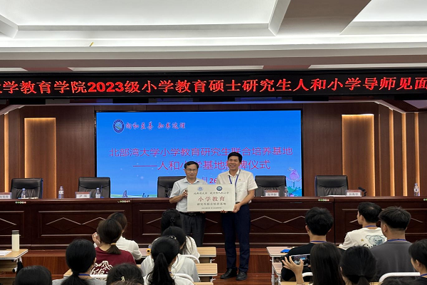 随后,叶汝坤书记代表学校给向人和小学授牌“研究生联合培养基地”,并期待双方在研究生教育、教师培训、教育科研等多个领域展开全面合作,共同培养具有创新精神和实践能力的高素质教育人才。