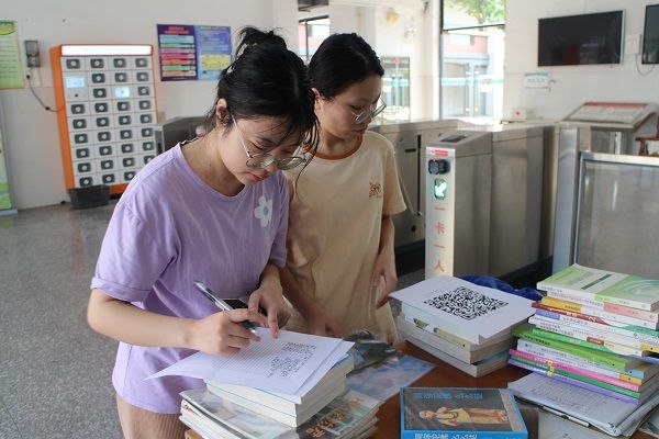 一册书籍一份情,一缕书香一片心!学院为每一位捐赠人颁发一份精美小礼品,进而鼓励同学们积极参与图书捐赠活动,通过书籍循环利用的方式传递爱心,传播知识,共建书香校园。(赵嘉琪 冯俏仪 摄)
