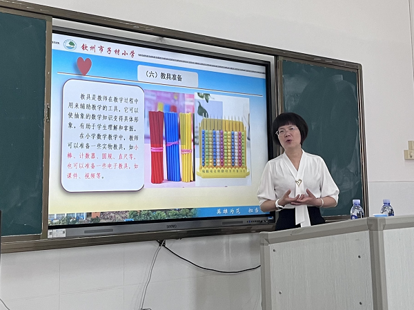 为加强小学教育硕士研究生对一线小学数学课堂教学的认识和了解,提高小学数学教学设计与实施的能力,我院特邀钦州市子材小学黎相艳校长于2024年4月17日上午在教育学院1A-501教室亲临授课,开展以《小学数学课堂教学设计与实施》为主题的学术讲座,小学教育全体研究生参加。