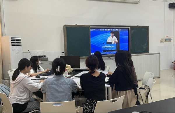 为深入学习贯彻习近平总书记关于教育数字化的重要论述和党的二十大战略部署,纵深推进教育数字化战略行动,探索大中小学纵向贯通的整体化教学课堂形态变革。我院于2024年4月19日上午9:00,组织2023级小学教育研究生在教育学院1A-501教室线上观看了由西南大学主办的全国学科教育联盟第三届年会暨数字化推动大中小教学研一体化变革研讨会中,关于人工智能赋能中小学语文教育变革的同课异构专题。