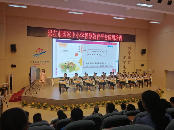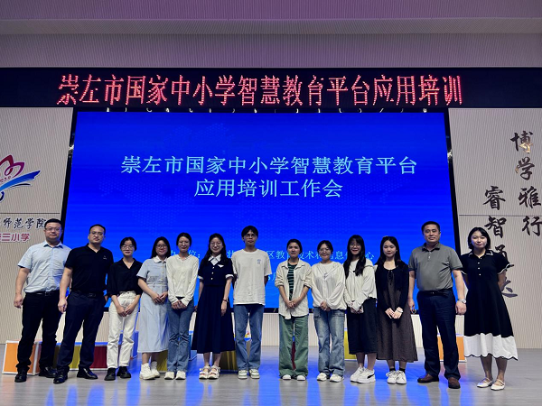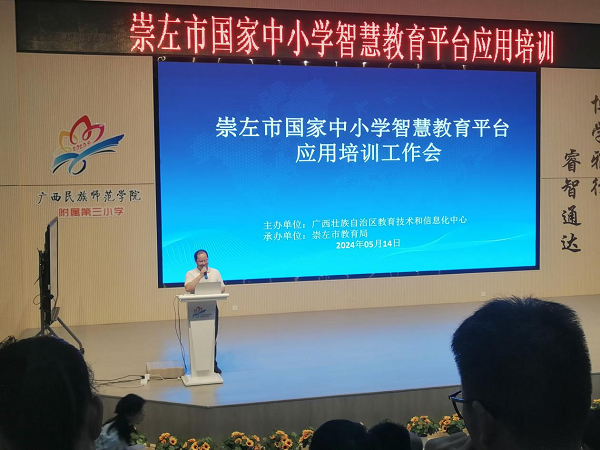 为深入实施国家教育数字化战略行动,深化数字资源与边境地区教育融合发展。2024年5月14日,北部湾大学教育学院周顺平院长、尹闯副院长、党政办主任张珂以及韦莹、周蓉蓉老师,携小学教育9名研究生到广西民族师范学院附属第三小学报告厅,参加由广西壮族自治区教育技术和信息化中心主办、崇左市教育局承办的国家中小学智慧教育平台应用培训。来自7个县(市、区)电教、教研、学校主管副校长或教研、教务主任、信息技术骨干教师共194人参加了此次培训。