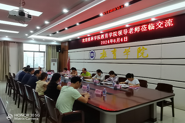 6月4日下午,桂林学院教育学院院长彭超带队一行6人到访我院,我院院长周顺平在1A-412会议室举行交流座谈会,院领导陈鹏、尹闯及各教研室负责人参加座谈。