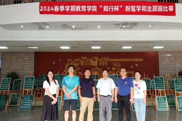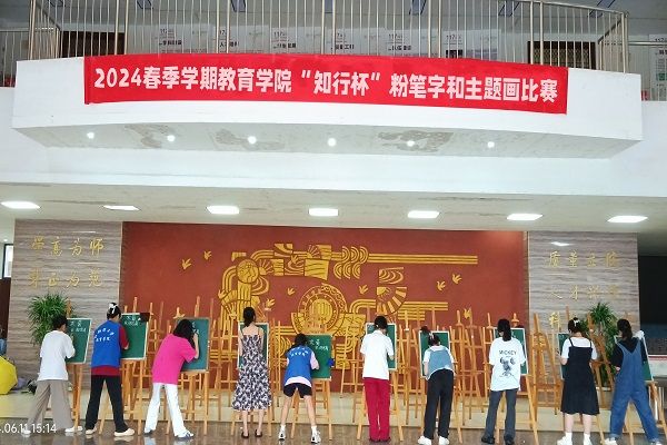为提升我院学生的师范生技能水平,加强学生之间专业技能的交流,6月11日下午,我院于教育学院大厅举办“行知杯”粉笔字、主题画比赛。我院党委书记叶汝坤,党委副书记陈鹏莅临现场指导。我院学工办副主任、团委副书记曹桂磊,教师曾允金、张小东、康书豪、施又丹,辅导员周蓉蓉、李想担任本次比赛的评委,我院学子积极参与。