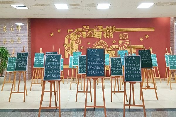 本次比赛分为粉笔字和主题画两个部分,主题画作品由参赛者提前完成并提交至1B-115报告厅参与评比。粉笔字作品由参赛者于教育学院大厅现场书写参与评比。在此次比赛中,选手们积极认真参赛,交上了一份份优秀的作品,充分展现了师范生的专业技能水平。最后,经过评委们的激烈讨论和严谨评选,共选出一等奖8名,二等奖12名,三等奖18名,优秀奖26名。