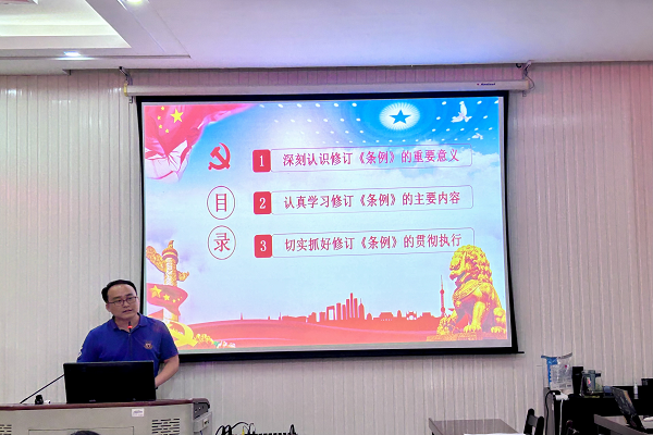 陈鹏从《条例》修订的重要意义、修订的主要内容以及如何贯彻执行三个方面进行了深入讲解,此次修订《条例》是促进全党深刻领悟“两个确立”的决定性意义、坚决做到“两个维护”的必然要求,是贯彻落实习近平新时代中国特色社会主义思想的具体行动。陈鹏领学了“政治纪律、组织纪律、廉洁纪律、群众纪律、工作纪律、生活纪律”的主要内容及要求,并用违反党纪的案例进行警示教育。告诫全体党员在日常的工作生活中要引以为鉴、认真贯彻执行,将《条例》要求落实到实处。