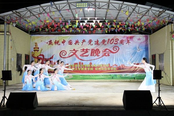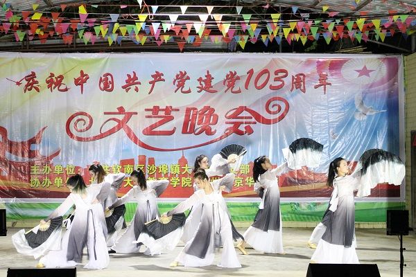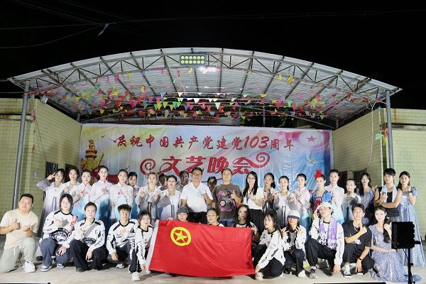 为提高社区艺术水平,丰富人民群众的精神生活,提高大学生实践能力,教育学院学子在曹桂磊老师的带领下于2024年6月29日前往大岭村开展大学生社区实践活动,协助开展“庆祝中国共产党建党103周年”文艺晚会。