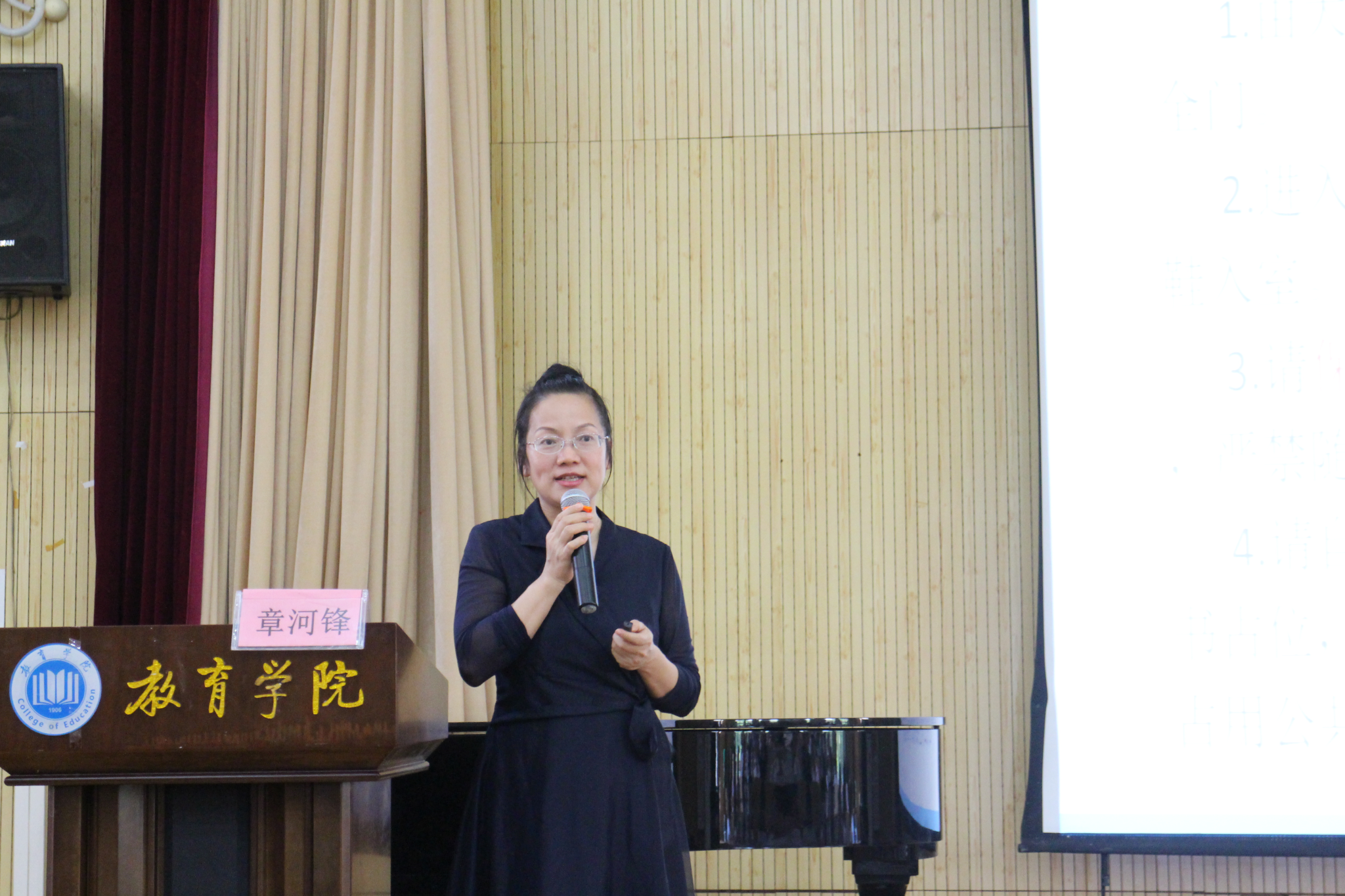 图书馆科员章河峰老师介绍了北部湾大学图书馆的基本情况及管理制度。她希望同学们能够积极主动到图书馆学习,并鼓励同学们充分利用图书馆中的各种资源,提升自身的科学文化素养。