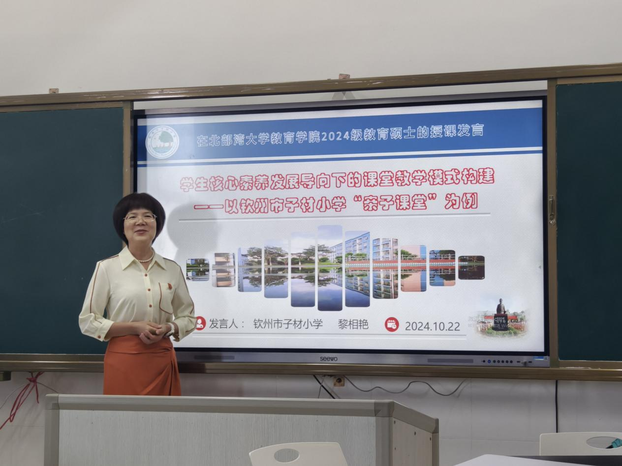 为进一步增强我院研究生对小学数学课程与教材的理解,2024年10月23日上午在1A-501教室,学院特邀钦州市子材小学党委书记黎相艳为2024级小学教育专业研究生作了题为“学生核心素养发展导向下的课堂教学模式建构”学术讲座,24级小学教育全体学生参加。