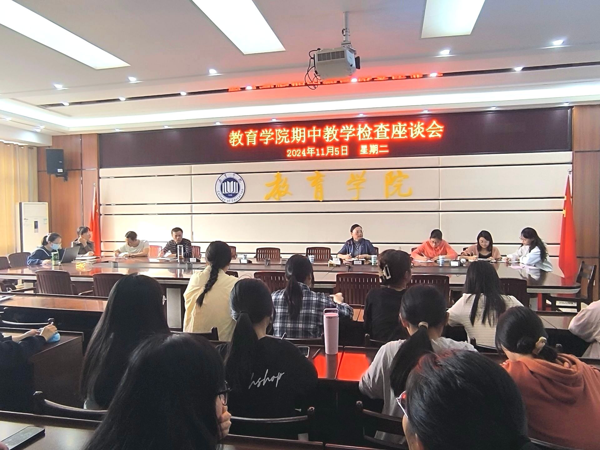 为了解本学院教学运行状况,及时发现、研究和解决教学过程中存在的问题,积极发挥教学单位管理作用,保证教学质量,根据教务处《关于开展2024年秋季学期期中教学检查工作的通知》,结合高校本科教育教学审核评估工作,我院逐步开展期中教学检查工作,于2024年11月5日召开期中教学检查学生座谈会。参会人员有各教研室主任、教学督导、教学秘书、教务员以及全院各班的学生代表。该会议由邬德利副院长主持。