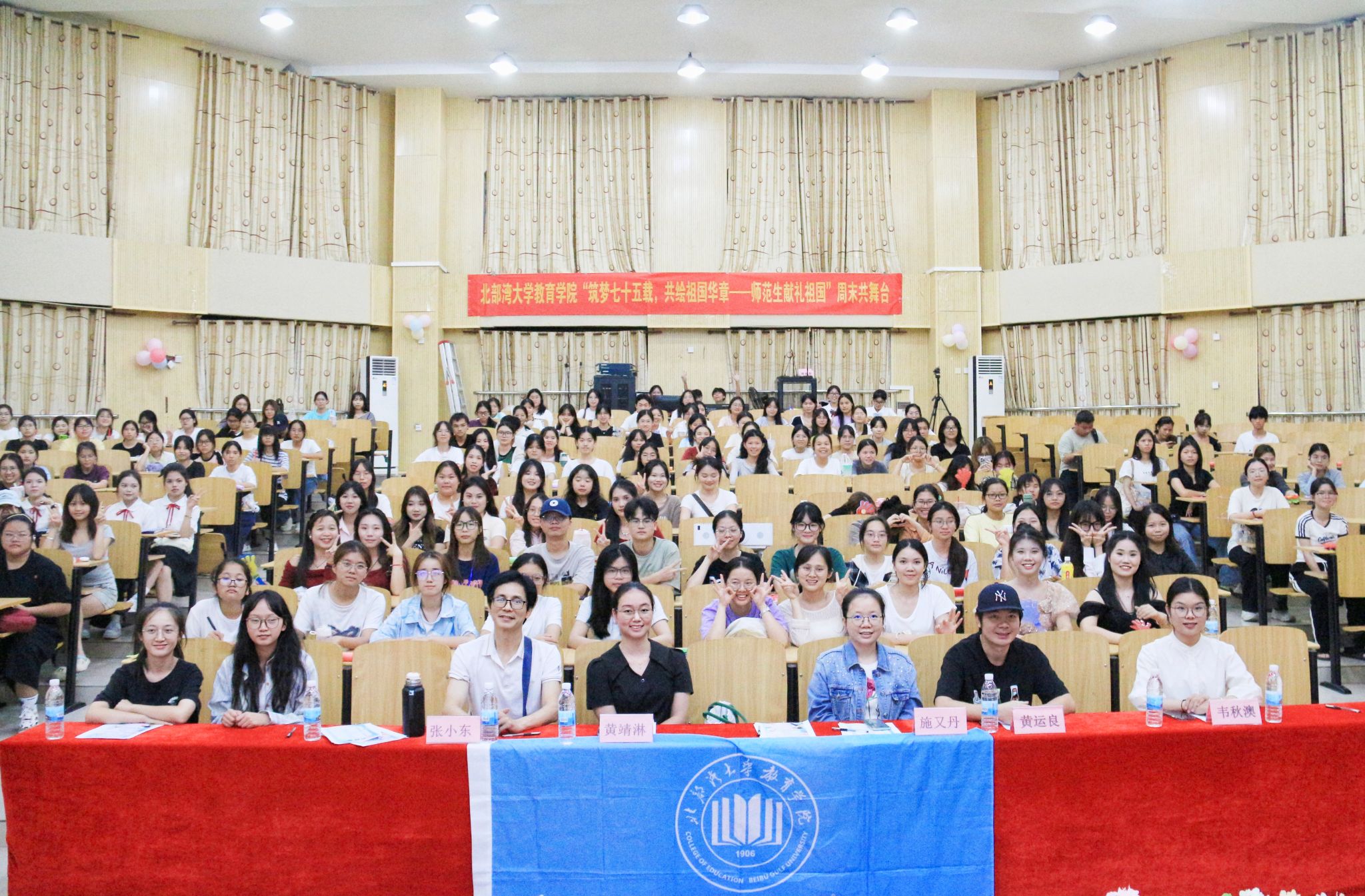 为贯彻落实新时代文化繁荣发展战略,丰富校园文化生活,11月15日晚,我院于1B-115报告厅开展了“筑梦七十五载,共绘祖国华章——师范生献礼祖国”周末共舞台之专业技能展演活动第二期。此次活动由我院教师黄运良、张小东、黄靖淋、施又丹,辅导员韦秋澳担任评委,我院学子积极参与。