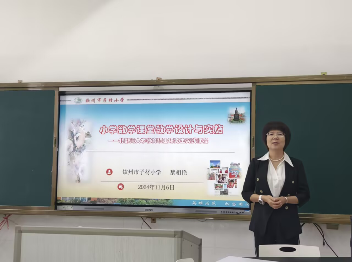 为增强小学教育硕士研究生对小学数学课堂教学的认识,学院于2024年11月6日上午在1A-501教室,特邀钦州市子材小学黎相艳书记为2024级小学教育专业研究生作了题为“小学数学课堂教学设计与实施”的学术讲座。