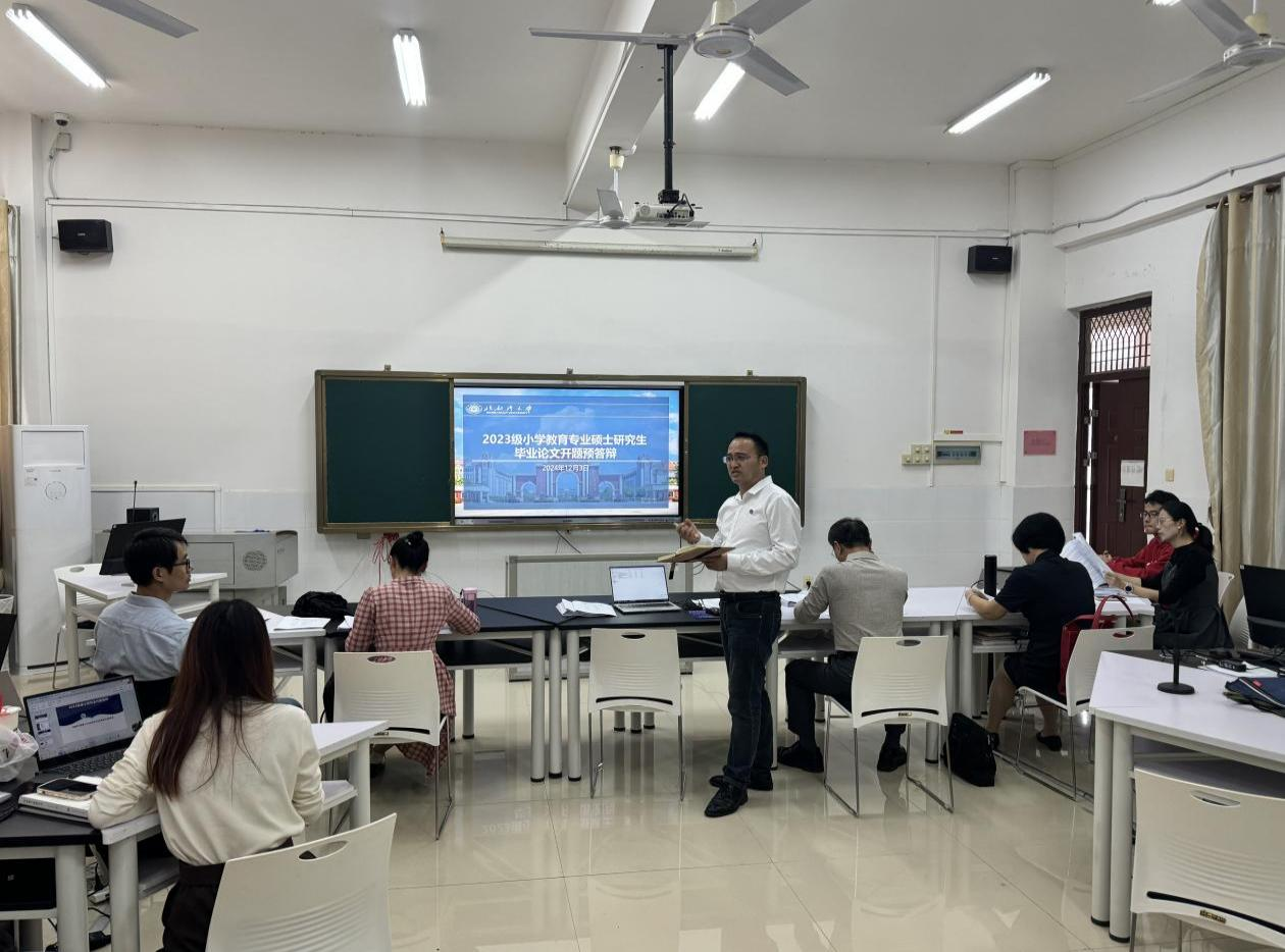 为检验2023级小学教育硕士研究生学位论文的研究逻辑严密性、方法科学性与格式规范性,2024年12月3日,教育学院在1A—501教室顺利开展了2023级小学教育硕士研究生学位论文开题预答辩。尹闯、何光耀、程族桁、黎爱群、梁苑霞老师作为答辩组成员参与答辩,孙一兰老师、蔡乐天同学负责记录,小教研241班全体研究生现场旁听。