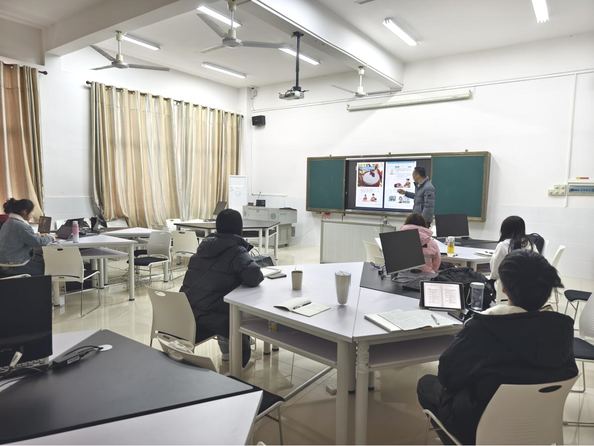 黄教授围绕“义教科学教育课程标准解读、小学科学教材研究与分析、小学科学教学设计与实施”这三个专题进行讲解。黄教授提到科学教育具有整合性、情境性、探究性的特点,强调科学课程标准的重要性和引领性,鼓励同学们深入理解课标,为未来的研究打基础。此外,黄教授还对小学科学教材进行分析,指导研究生如何设计和实施科学教学,并观看相关示范课,针对示范课与同学们共同探讨其中的优点和不足。