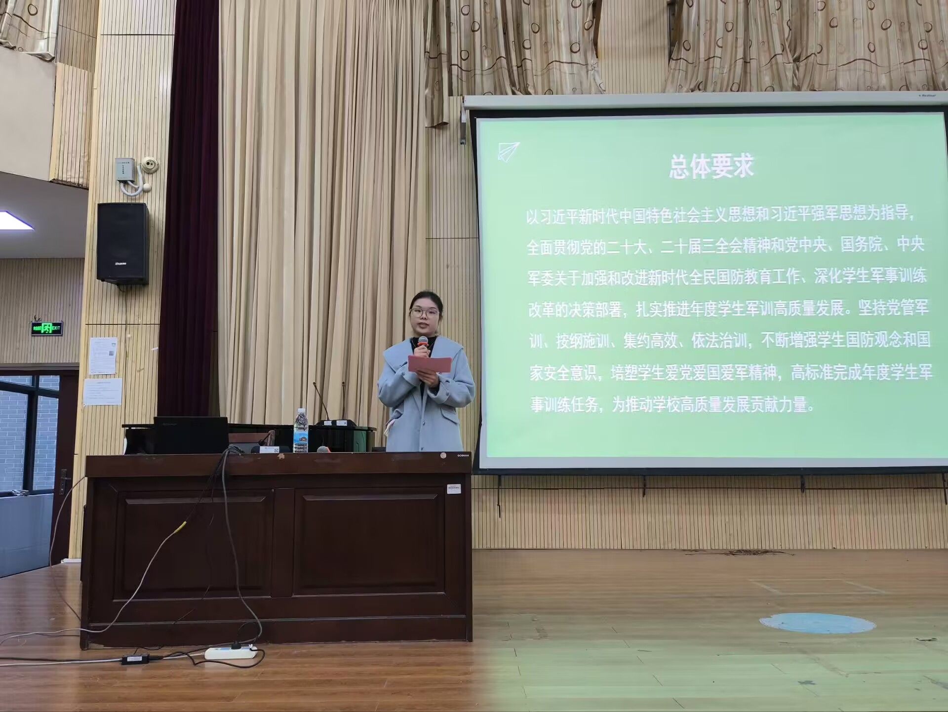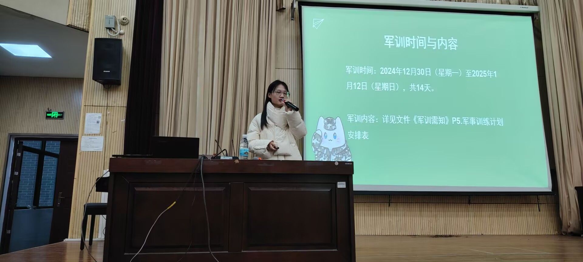 为了不断增强学生国防观念和国家安全意识,高标准完成年度学生军事训练任务,12月27日,我院于1B-115报告厅召开了2024年教育学院军训动员大会。我院党委副书记莫秀群,辅导员韦秋澳、苏乐妍及大一新生参加了本次大会。
