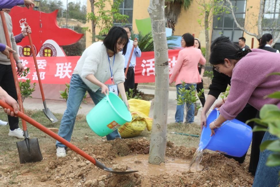 春风拂绿,党旗飘扬。此次植树活动种下的不仅是绿树,更是我院加强党建带团建、深化党团共建的重要实践,由此以“党建红”引领“生态绿”,培育学院高质量发展的绿色基因。(黄茵等 摄)