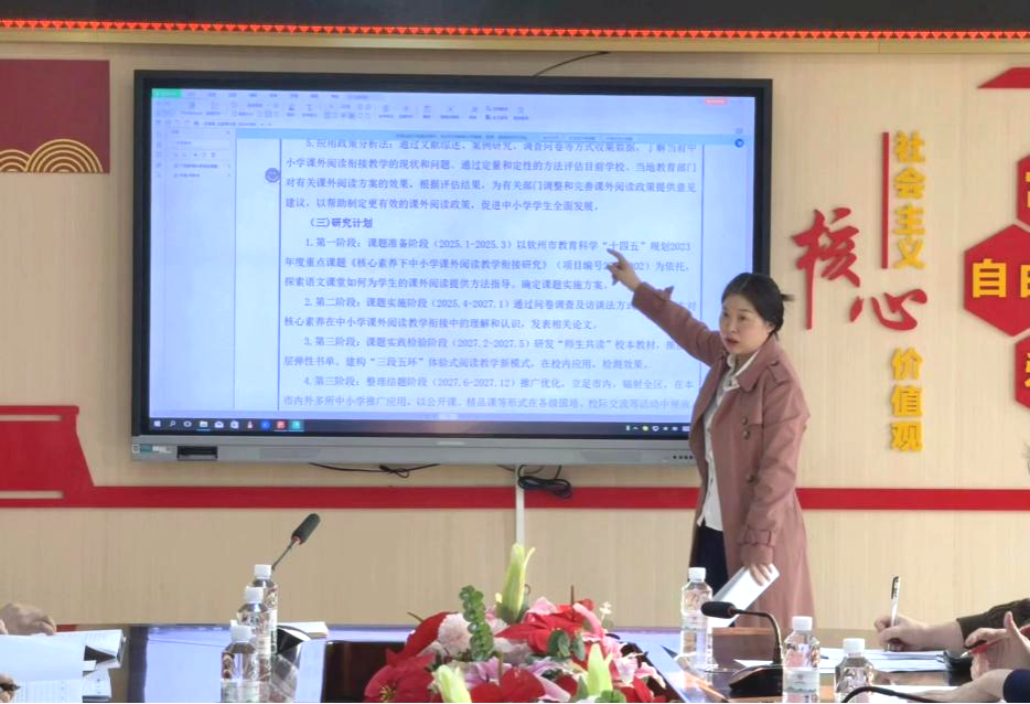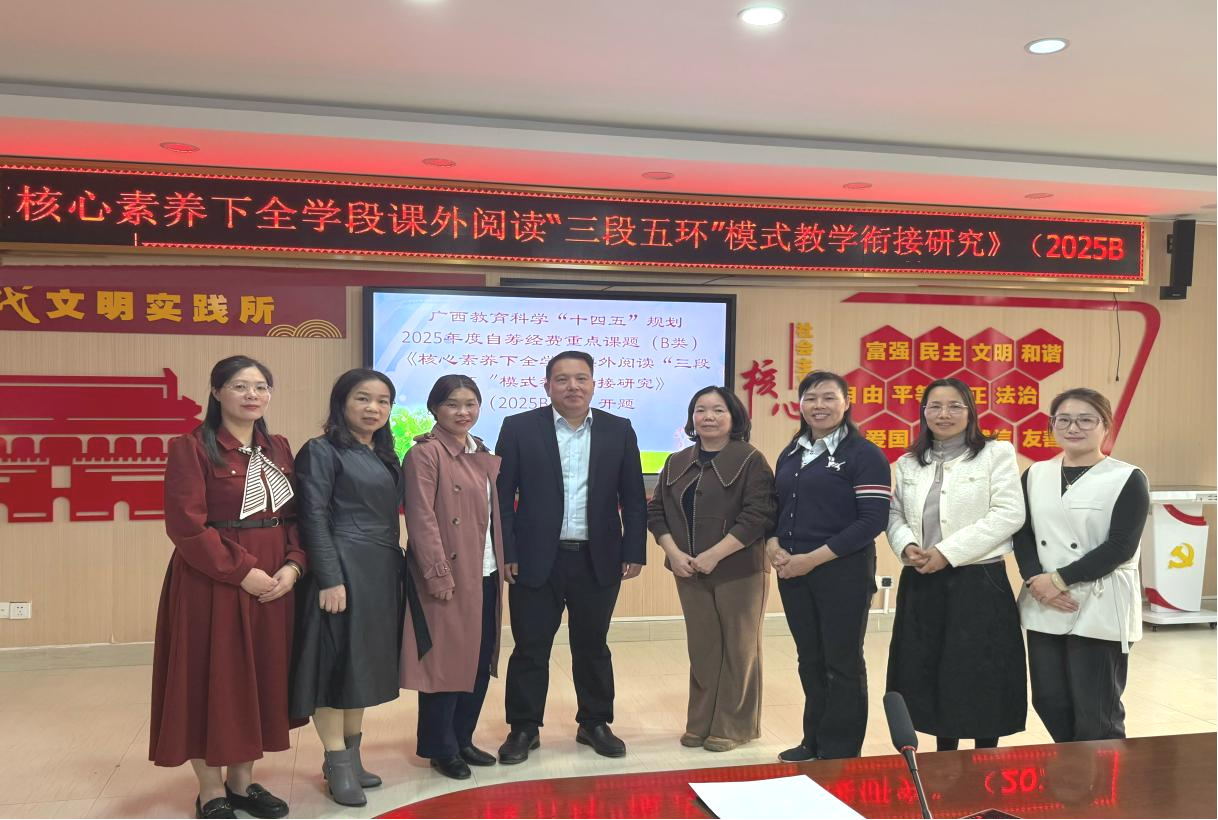 为进一步明确课题研究方向,扎实推动课题研究进程,提高课题研究的科学性和规范性,3月20日下午,北部湾大学教育学院刘海燕副教授主持的“核心素养下全学段课外阅读‘三段五环’模式教学衔接研究”(广西教育科学“十四五”规划2025年度自筹重点课题:2025B210)在钦州市高新区实验学校举行。本次开题报告会邀请北部湾大学李永妃教授、南宁师范大学黄姣华教授、钦州市高新区实验学校校长韦福发进行课题评议。其中黄姣华教授在线上听取了开题论证。论证会由钦州市高新区实验学校教育科研处负责人卜晖霞主持,立项课题主持人及部分课题组成员一同参会。