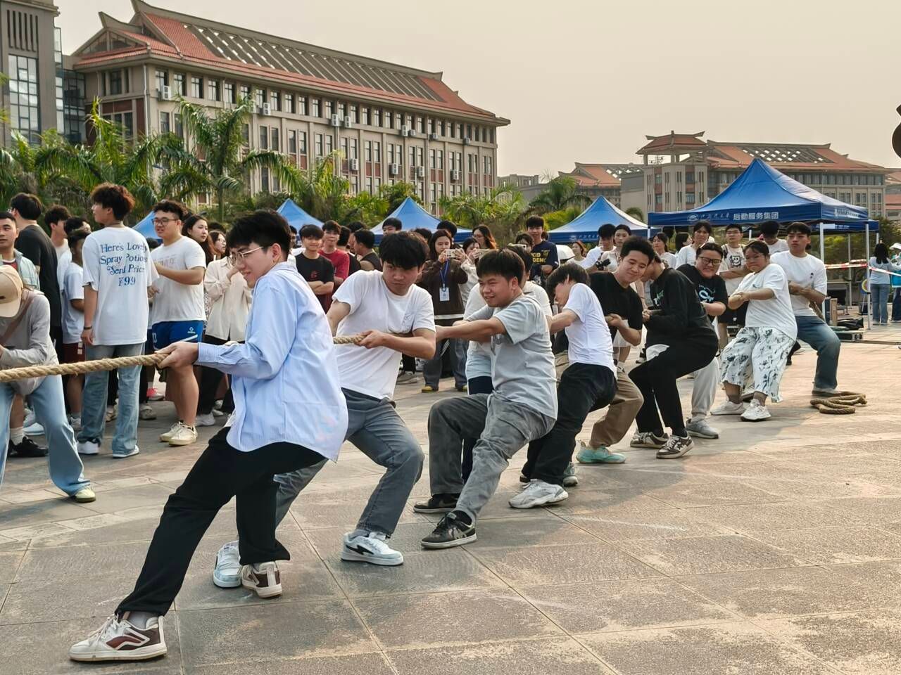 拔河赛场点燃激情。教育学院参赛队伍齐心协力、奋力拼搏,场边加油声与欢呼声此起彼伏,展现出团结奋进的精神风貌。