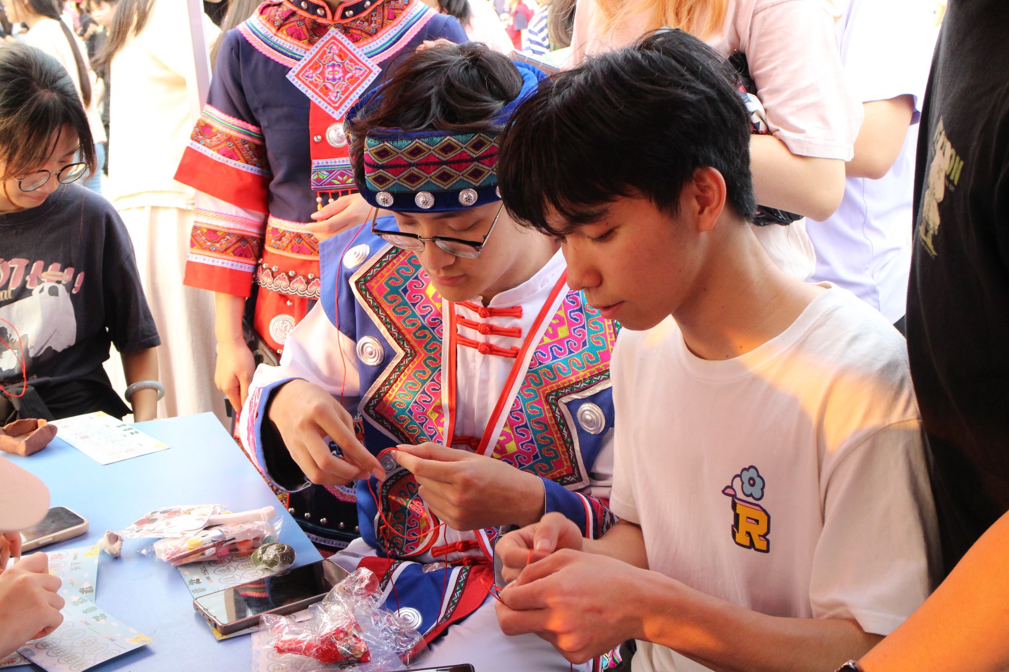 教育学院以此次“三月三”节庆为纽带,借歌舞传情、巧手织彩、力聚同心,不仅让学子沉浸式感悟和传承民族文化,而且助力铸牢中华民族共同体意识,共绘民族团结画卷。(毛婧涵 摄)