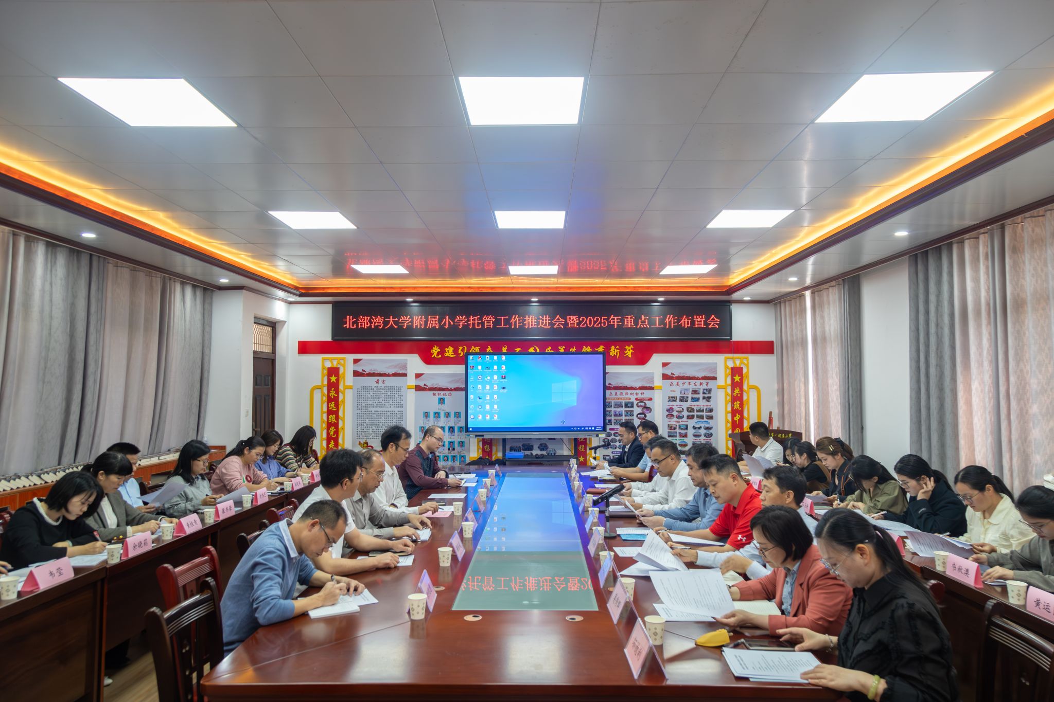 会议伊始,教育学院院长周顺平汇报了湾大附小托管工作进展,详细解读托管协议内容并部署2025年重点任务,要求各部门细化分工,推动托管举措落实。