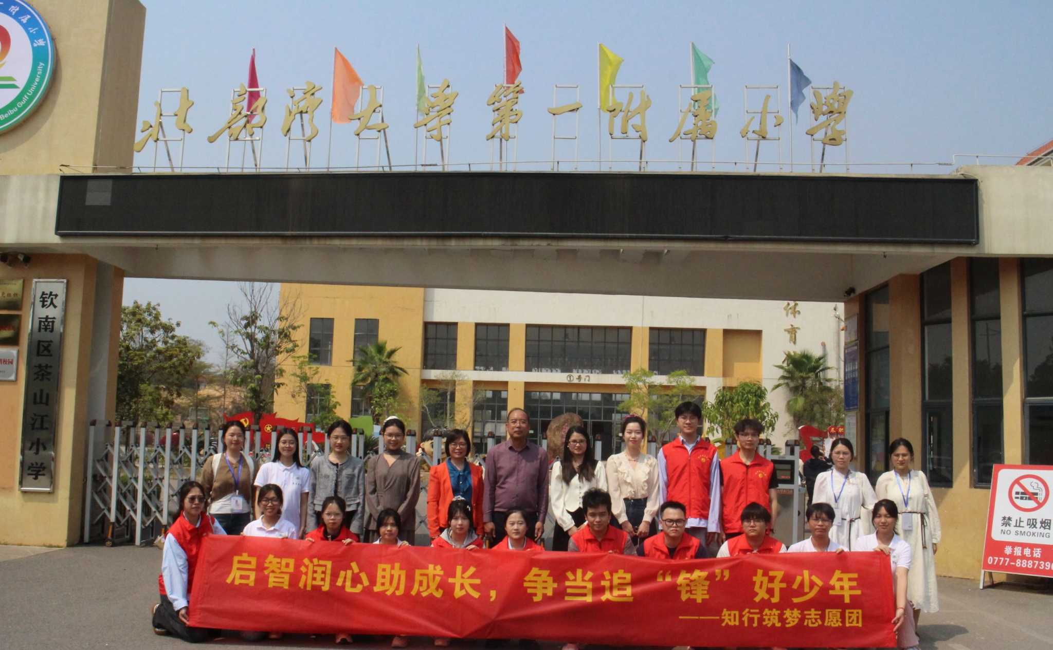 2025年3月24日下午,北部湾大学教育学院与理学院联袂共赴北部湾大学第一附属小学,开展“启智润心助成长,争当追‘锋’好少年”义教志愿服务活动。活动由教育学院党委副书记莫秀群、团委副书记曹桂磊,理学院团委副书记庞悦,教育学院辅导员韦秋澳、苏乐妍组织15名志愿者带队前往。