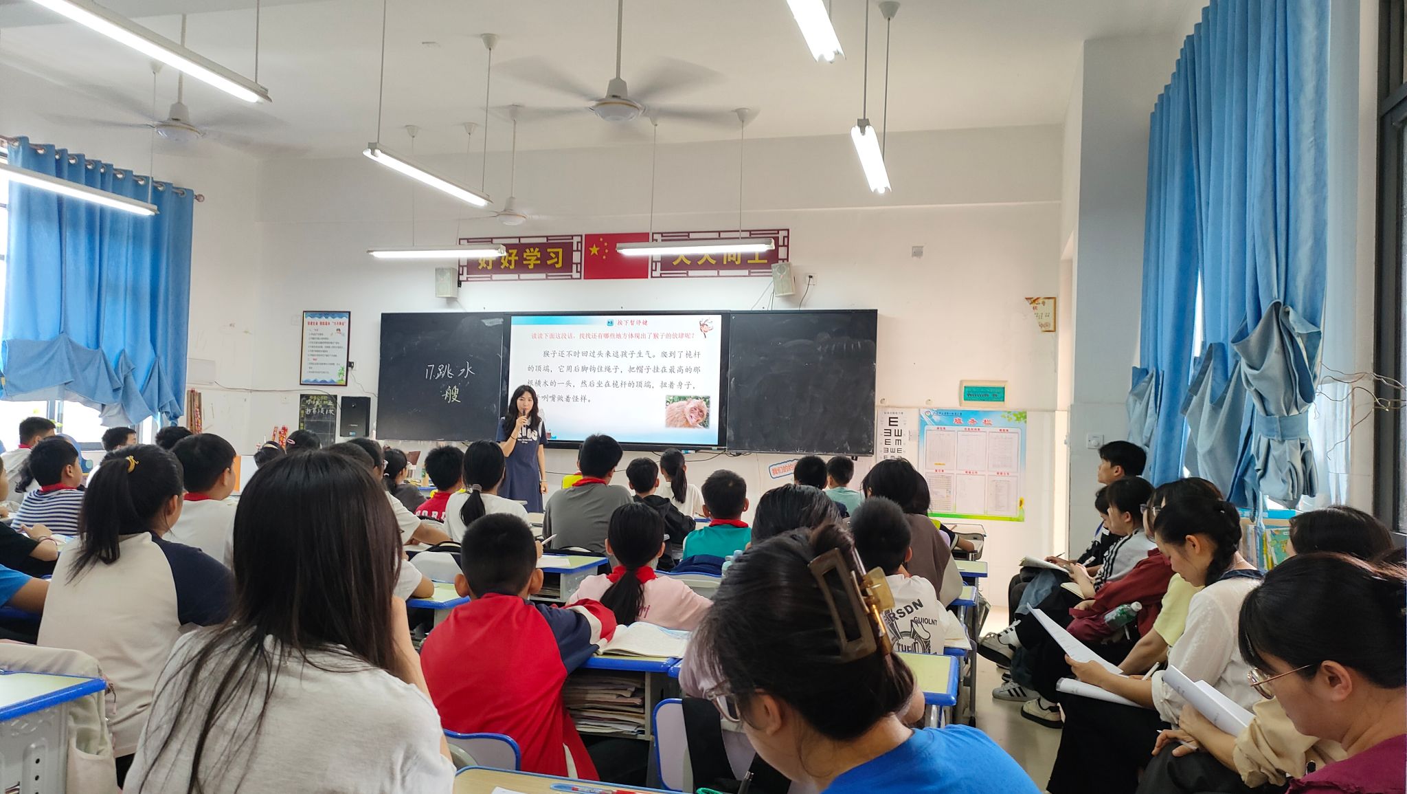 陆悦同学这次上课的内容是五年级语文课本中的《跳水》。为了让课堂更生动,她设计了情境互动、角色扮演和小组讨论等环节,孩子们积极参与,课堂气氛十分活跃。附属小学的老师们全程认真听课,并在课后给出了细致的指导,同时,23级小学教育专业的学弟学妹们也来观摩学习,大家都收获颇丰。