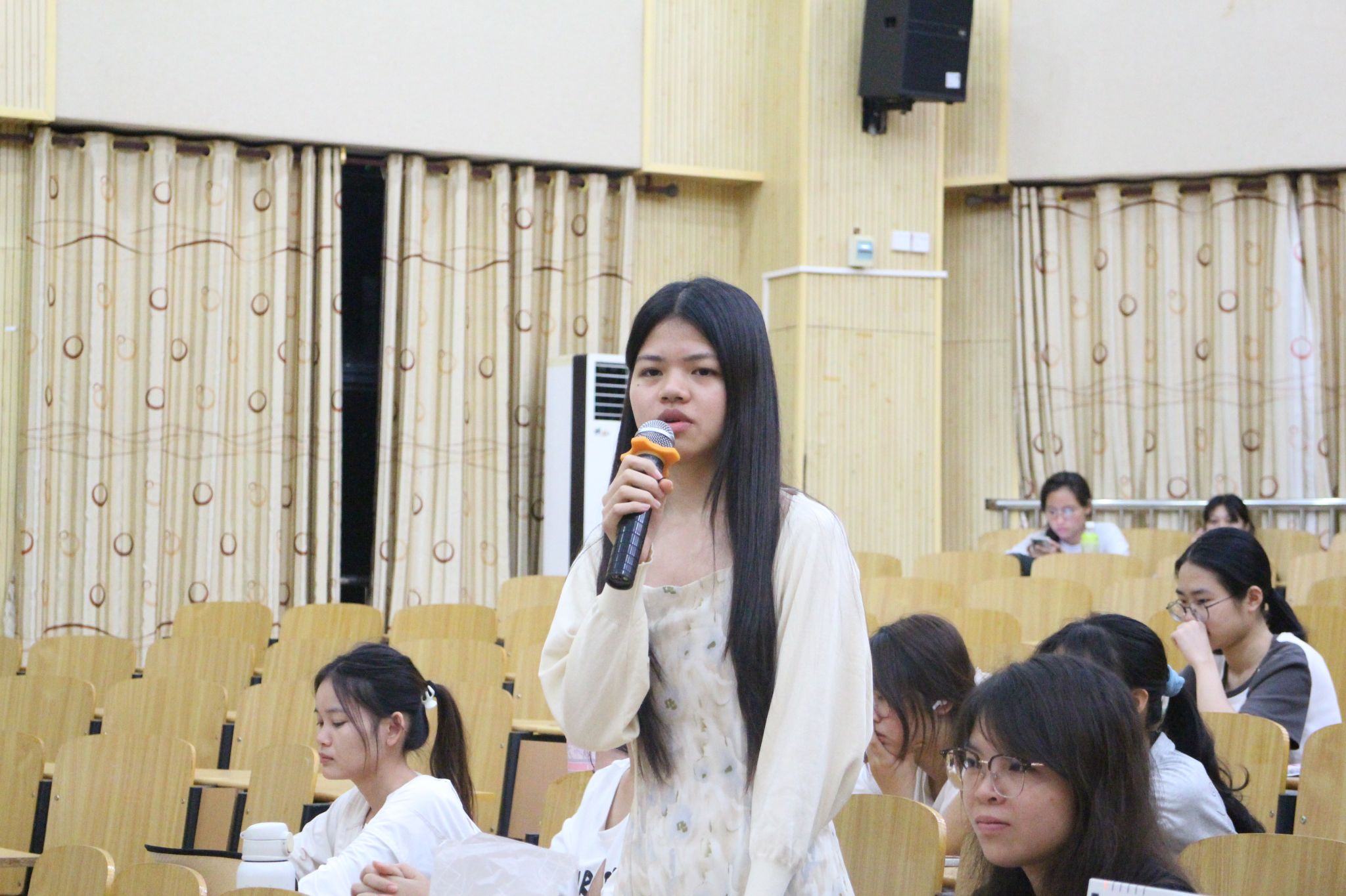 活动伊始,郑娇萍老师向大家介绍了学院考研上岸的学子。随后,考研学子梁清静、赵颖和李佩霞分别从考前准备、心态调整、常见问题这三个方面进行备考经验分享。在互动环节,同学们积极踊跃,现场气氛热烈。最后,院党委副书记莫秀群总结发言,她通过深入询问同学们的需求,明确学院将全力为考研同学提供支持与帮助。