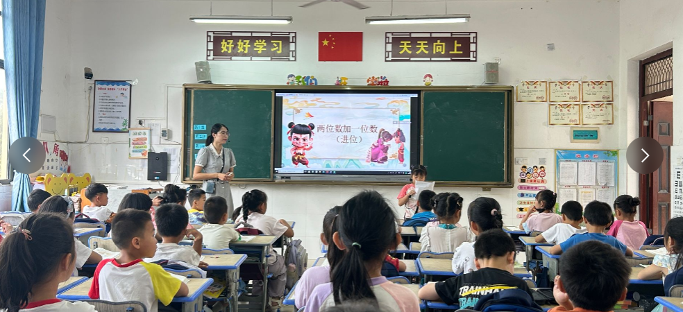 活动分为课例展示、诊断式评课、主题教研和总结反馈四个环节。附小的邓雪芳老师和黄显媚老师分别展示了一年级《两位数加一位数(进位)》和四年级《乘法交换律和结合律》的示范课。两位老师以学生为中心,通过启发式教学和小组合作,有效激发了学生的学习兴趣和思维深度。