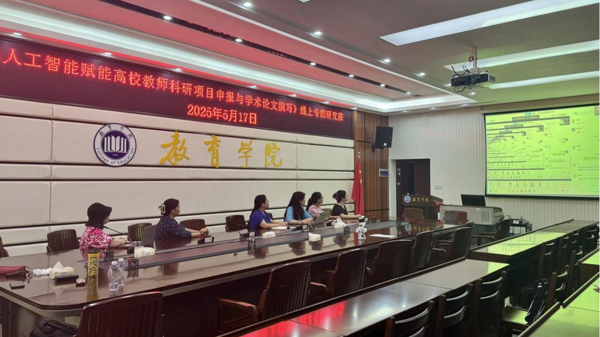 为贯彻落实《教育部关于加快高校人工智能创新发展行动计划》文件精神,助力教师掌握人工智能技术与科研工作深度融合的前沿方法。5月17-18日,学院在1A-412组织主题为“人工智能赋能高校教师科研项目申报与学术论文撰写”线上专题研修班,共16位教师参加培训会,部分教师线上参加培训。
