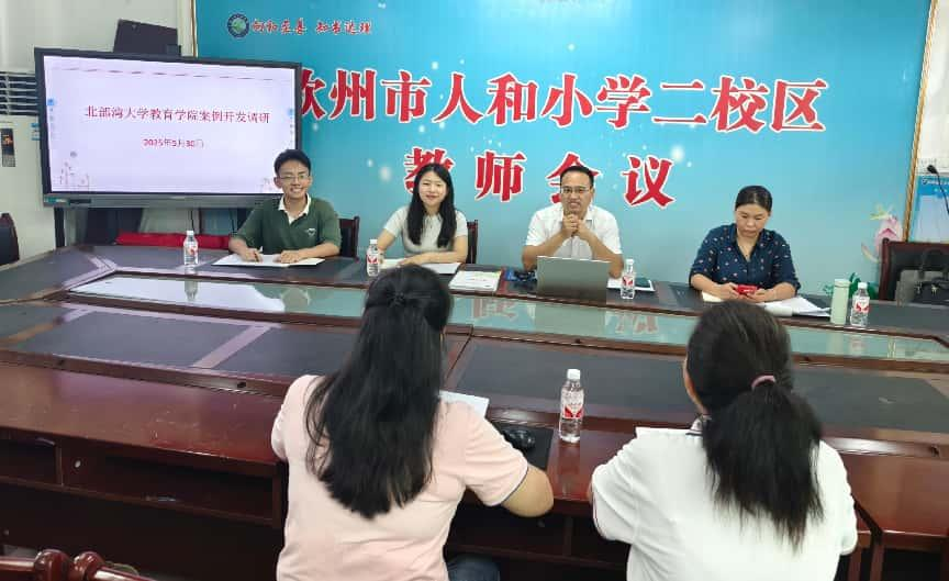 为深入挖掘优秀教学实践案例,推动案例教学有序开展。2025年5月30日,小学教育案例开发研究小组负责人尹闯,组织小组成员刘海燕、崔凤蝶、蔡乐天赴钦州市人和小学开展教学案例开发专题调研。钦州市人和小学教导处主任黄春媚、副主任陶明燕,接待调研组并组织座谈会。