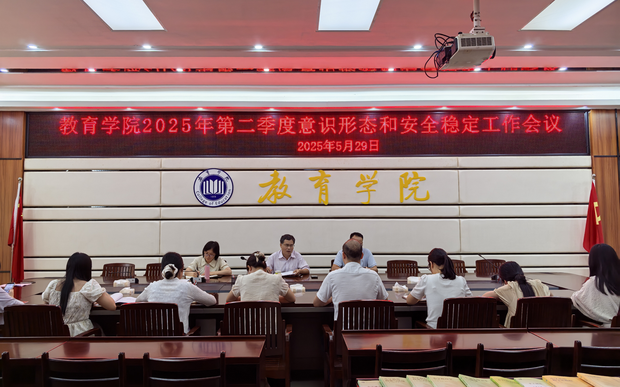 5月29日下午,教育学院召开2025年第二季度意识形态和安全稳定工作会议,全面分析当前安全形势,部署当前和下一阶段工作。学院领导班子、各部门负责人及相关人员参会。