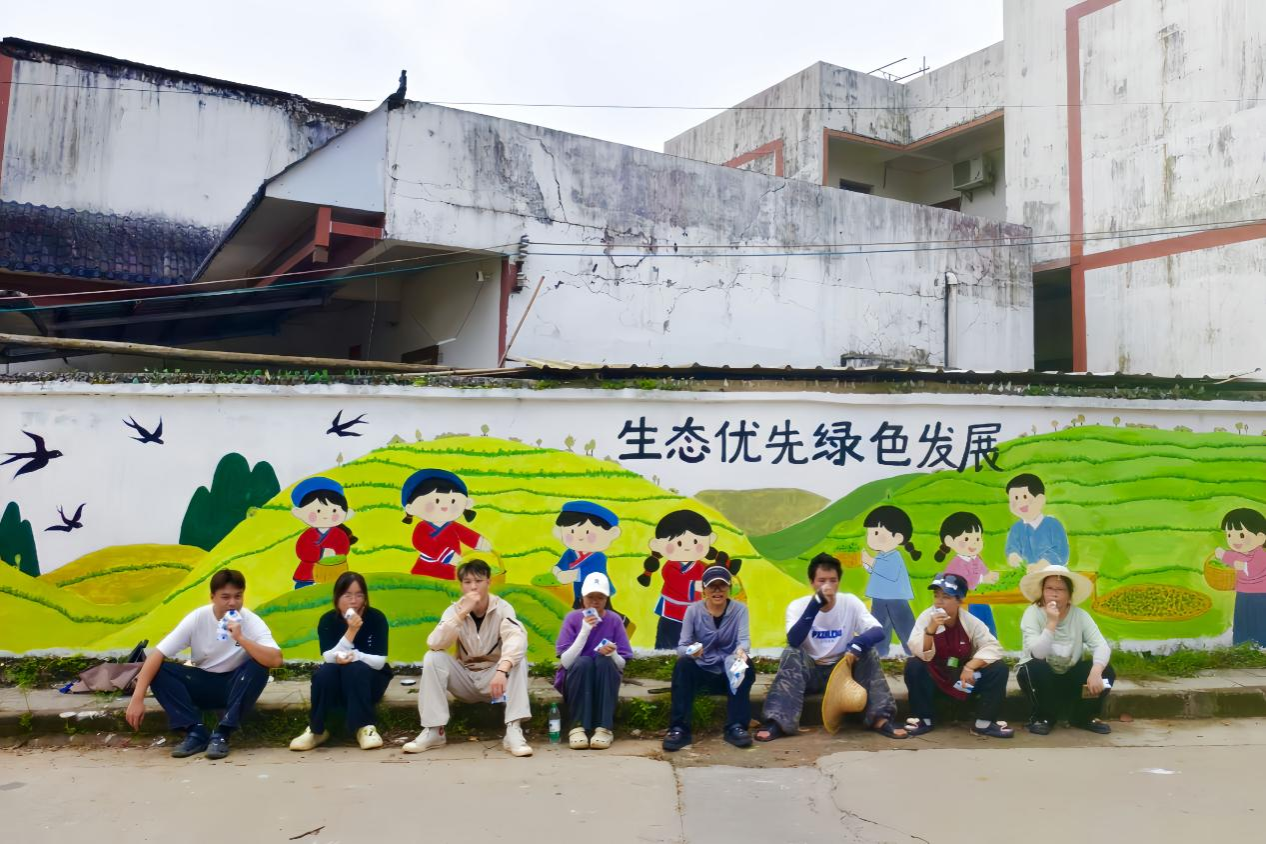 在十万山蜿蜒的乡道旁,师生们结合十万山瑶乡的民族文化特色,围绕社会主义核心价值观、民族团结、乡风文明和移风易俗等主题,对木排村、垌平村的老旧墙面开展沿街墙体彩绘工作,这不仅为乡村披上了绚丽的新装,还让一幅幅生动的墙绘成为传播文明的窗口,引得过路村民频频驻足称赞。