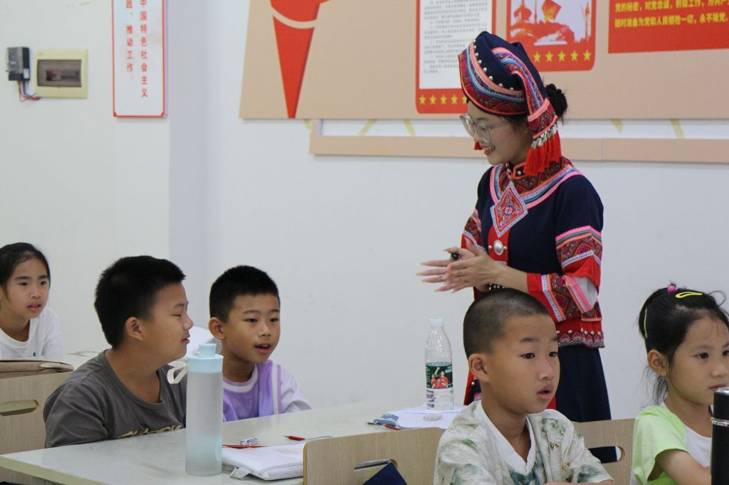 活动期间,实践团通过“推普”主题书法课程和爱国主义诵读课程等公益课堂引导青少年传承红色基因,带领孩子们通过拼绣球、唱民族歌和跳民族舞,传承民族文化,铸牢民族团结意识。实践团还精心准备了青少年防性侵、科学实验、AI历史、体育和劳动等课程,促进青少年综合素质发展。