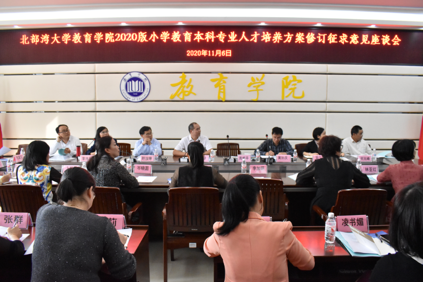 会上,周顺平院长对2020版小学教育本科专业人才培养方案的修订依据、修订过程和更新情况作了详细介绍,东兴市马路镇中心小学校长莫起辉、钦州市第三十四小学校长林亚红、钦州市人和小学副校长岑晓圆等与会人员踊跃发言,建言献策,对人才培养过程和课程设置等提出了不同意见和看法,为我院进一步修改人才培养方案提供了参考。