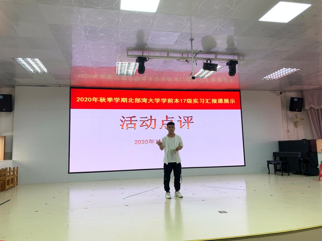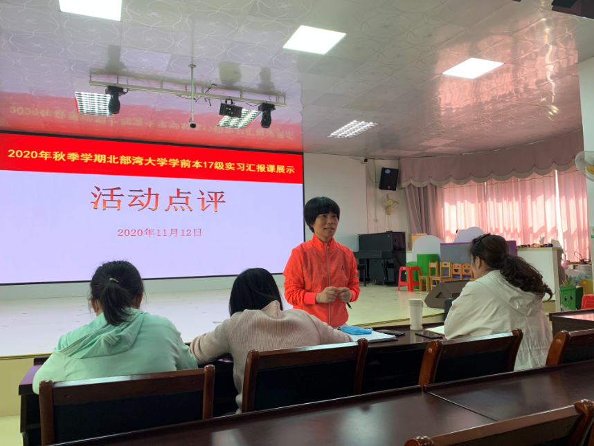 2020年11月12日上午,我院学前本171班在钦州市实验幼儿园开展专业实习汇报课暨专业实习总结会。实习指导教师唐上洁、施又丹,钦州市实验幼儿园保教主任张笑非、骨干教师苗苗等老师莅临现场指导评议,我院学前本171班钦州市实验幼儿园实习小组参加此次活动。