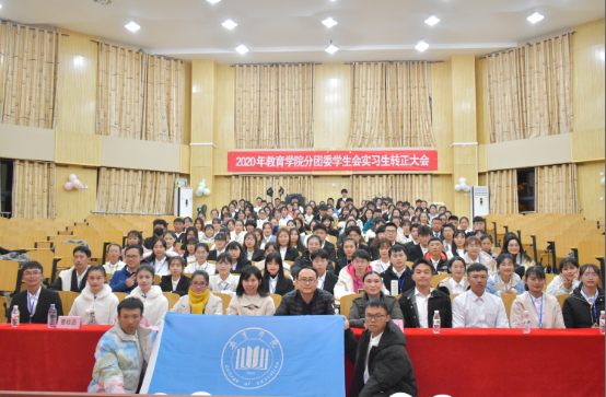 为了增强分团委学生会实习生的责任感和担当意识,加强各部门的沟通交流和团结协作,更好地服务学院、服务同学,2020年12月17日晚,我院于1B-115报告厅举行了2020年教育学院分团委学生会实习生转正大会。我院党委副书记陈鹏、学工办主任韦春林、学前教育专业教师黄丽萍,辅导员罗晓霞、曹桂磊出席了本次大会。各二级学院代表及我院分团委学生会全体成员参加了此次大会。