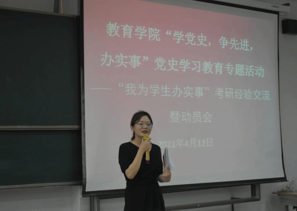 会议首先由今年考研成功的两位学生代表:小教本171班廖卓蓉和学前本171班刘超群分别分享了自己的考研经验,向同学们简单介绍了考研的大概流程,在面对考研应该保持怎样的心态,考研的书籍推荐等问题上一一做了分享,同学们对考研有了更进一步的认识。接着,我院优秀教师代表就自身的考研经验并结合当今社会的考研现状发表讲话,更深层次的阐述了考研的意义,考研不仅能为自己创造更好的发展平台,也能使自己有更大的能力为国家为社会做出更大的贡献。最后,陈鹏副书记就同学们对考研还存在的疑惑进行解答,并表示我院定会全力支持同学们的考研备考,为同学们营造一个安静舒适的考研氛围。