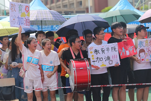 本次运动会的比赛项目多种多样,既有展现个人特长的百米赛跑、千米长跑,抛标枪等项目,也有体现合作精神的接力赛。比赛分为学生组和教职工组。赛场上,我院运动健儿们表现出色,在赛道上驰骋、拼搏,充分展现教育学院的风采。赛场外,我院拉拉队也不甘示弱,声声有劲的呐喊,阵阵有力的助威,欢呼声、加油声、擂鼓声,每一种声音都是对运动员有力的鼓舞。历时两天的赛程,我院荣获了“优秀组织奖”和“体育道德风尚奖”的称号,以及团体总分第七名。其中,我院教师黄文强获得了教工男子(45上)组100米决赛的第一名,教师施又丹获得了女子组800米决赛的第二名,陈丽婷同学获得了女子5000米决赛的第一名。