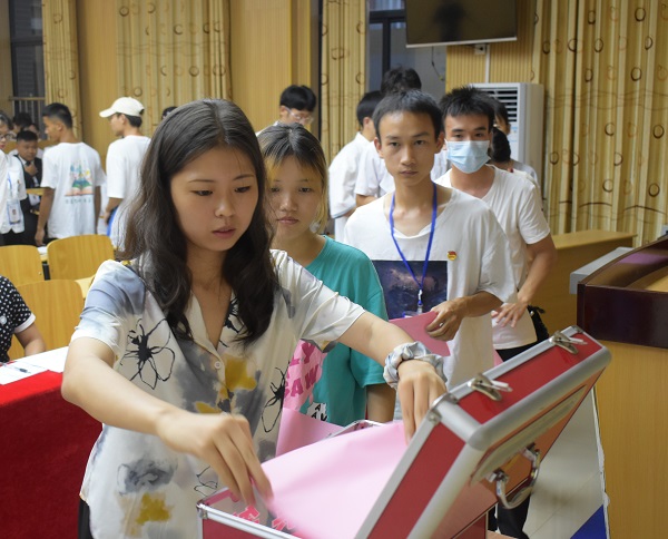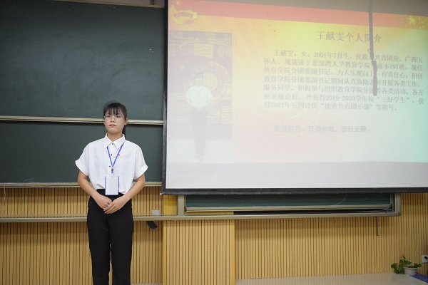 首先,主持人苏华艳宣读大会的注意事项、会议流程及选举办法。随后,分团委副书记王献雯上台做年度报告发言,对本学年分团委的各项工作进行了详细的总结并提出了新的展望。接着,各候选人依次上台发言竞选。参会人员认真听取,采用无记名投票的选举办法,选举了王献雯、韦铭诗、刘春小、沈旭娇、宋振缙、蒋婷钰、梁瑶7人为新一届分团委成员。
