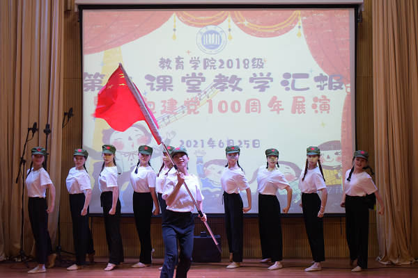 为庆祝建党100周年,展示学生第二课堂学习成果,2021年6月25日,我院于1B-115教室开展2018级师范生第二课堂教学汇报暨庆祝建党100周年展演。我院副院长黎茂昌,分团委书记韦春林,教师黄运良、黄永吉、李佳烨、张小东、曾允金,辅导员罗晓霞、曹桂磊出席本次活动,2018级全体同学参与此次活动。