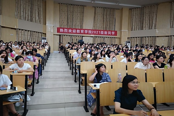 2021年9月14日晚上7:30,在1B-115教室召开教育学院2022届本科毕业论文选题讲座,讲座主讲人是我院冼秀丽教授,参加讲座的有周顺平院长、黎茂昌副院长、教育学院的老师、学前本181班、小教本181班、学前专升本201-204班的全体毕业班学生。会议由黎茂昌副院长主持。