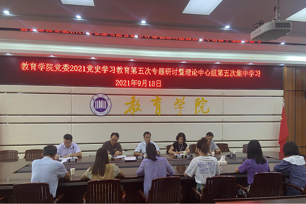 9月18日,教育学院党委于1-412会议室召开党史学习教育专题第五次集中学习会议暨党史学习教育专题研讨读书班。我院党委理论中心组全体成员参加会议,会议由委书记叶汝坤主持。