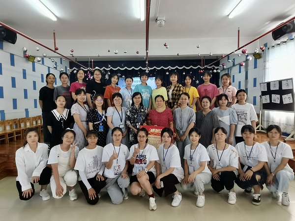 最后,带队老师施又丹和实习大组长李慧琳一起向钟景丽园长献上实习感谢信,现场领导、老师和实习生合影留念,此次实习画上圆满句号。