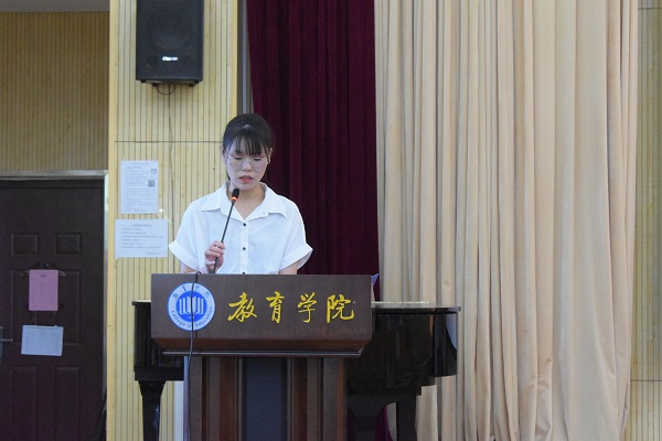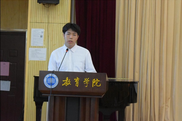 会议伊始,第一届分团委副书记王献雯和第二届学生会执行主席邹洋宇依次上台发言,他们对本学期的工作成果进行了汇报与总结。而后,分团委学生会的各部门代表依次上台对本学期开展的工作进行总结,并针对存在问题的提出改进方法等。从各部门发言人的总结中体现了我院分团委学生会团结友爱、不怕困难、敢于创新的精神,本学期每一项工作的顺利开展都离不开分团委学生会每一个成员的支持和努力。最后,叶汝坤书记为本次会议做总结发言,他表示,我院本学期的工作成果丰硕,是全体师生共同努力的结果。各部门自有特色,敢于承认错误并努力改进值得鼓励。他希望新老干部继承发扬教育学院的优良传统,相互学习、相互尊重,利用假期时间完善自我,在学习和工作中不断进步。