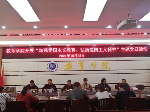 10月25日下午,我院教师党支部在学院会议室召开支部大会,开展“加强爱国主义教育、弘扬爱国主义精神”主题党日活动,支部全体党员参加。