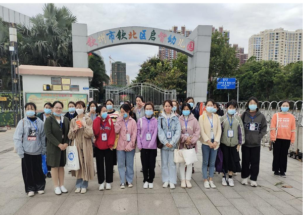 为了加深同学们对幼儿园区域的环境创设与活动指导的了解,明确幼儿园区域活动与游戏对于幼儿成长的重要意义,将所学的理论知识和技能运用于实践,2021年11月8日至12日,北部湾大学教育学院学前本192班的22位学生,在韦芳老师的带领下前往钦州市钦北区启智幼儿园开展为期一周的专业见习。