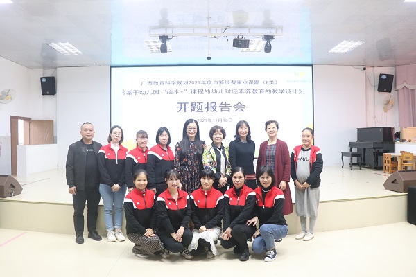 2021年11月17日下等,我院学前教育协同发展研究室王素华教授、唐上洁主任和钦州市教育科学研究所方美婷所长到钦州市实验幼儿园参加该园举行的自治区课题开题汇报会:一项是由陆玲园长主持的2021年度广西财经素养教育研究专项课题《基于幼儿园“绘本+”课程的幼儿财经素养教育的教学设计与实践》,一项是由张笑非主任主持的广西教育科学规划2021年度“幼儿园课程改革与保教质量提升”专项课题《钦州坭兴陶文化融入幼儿园课程研究与实践》。